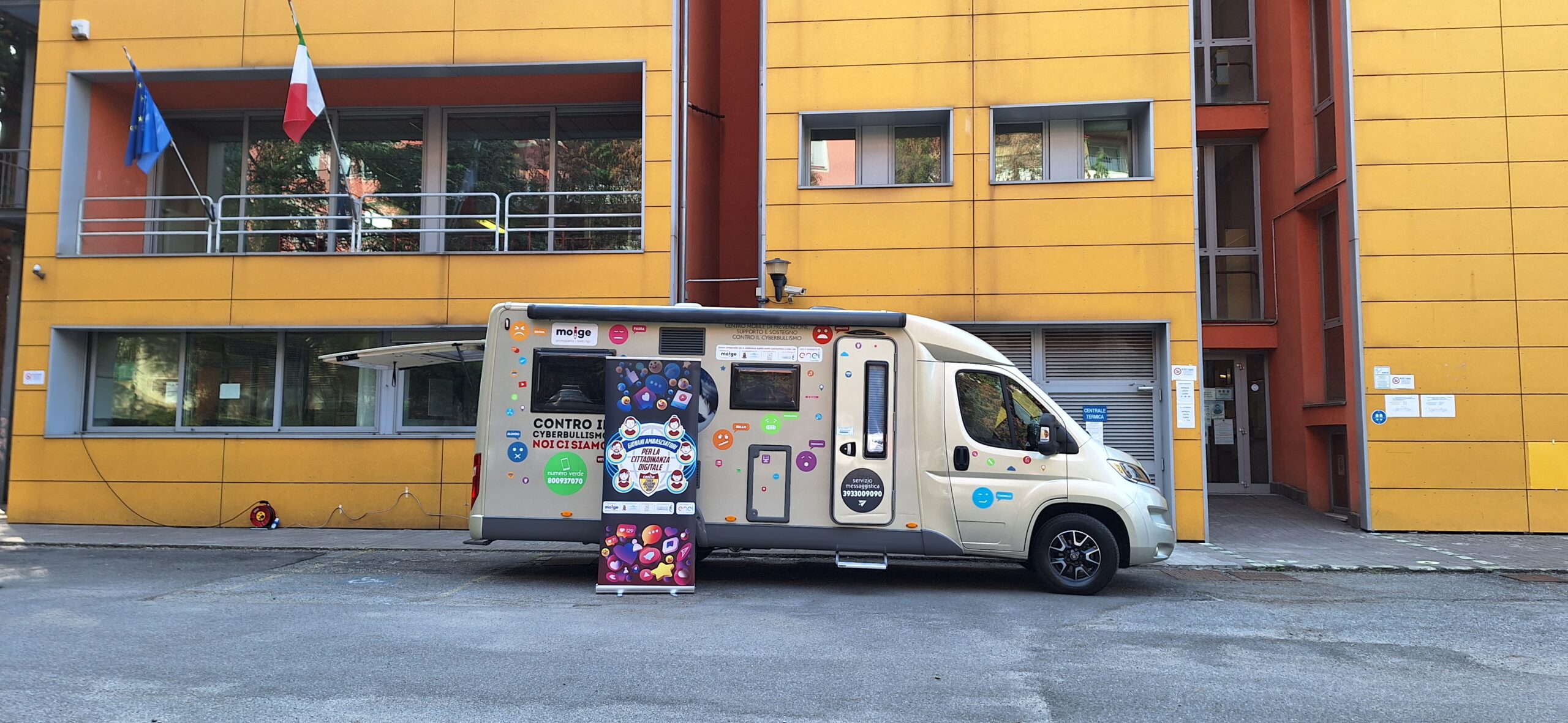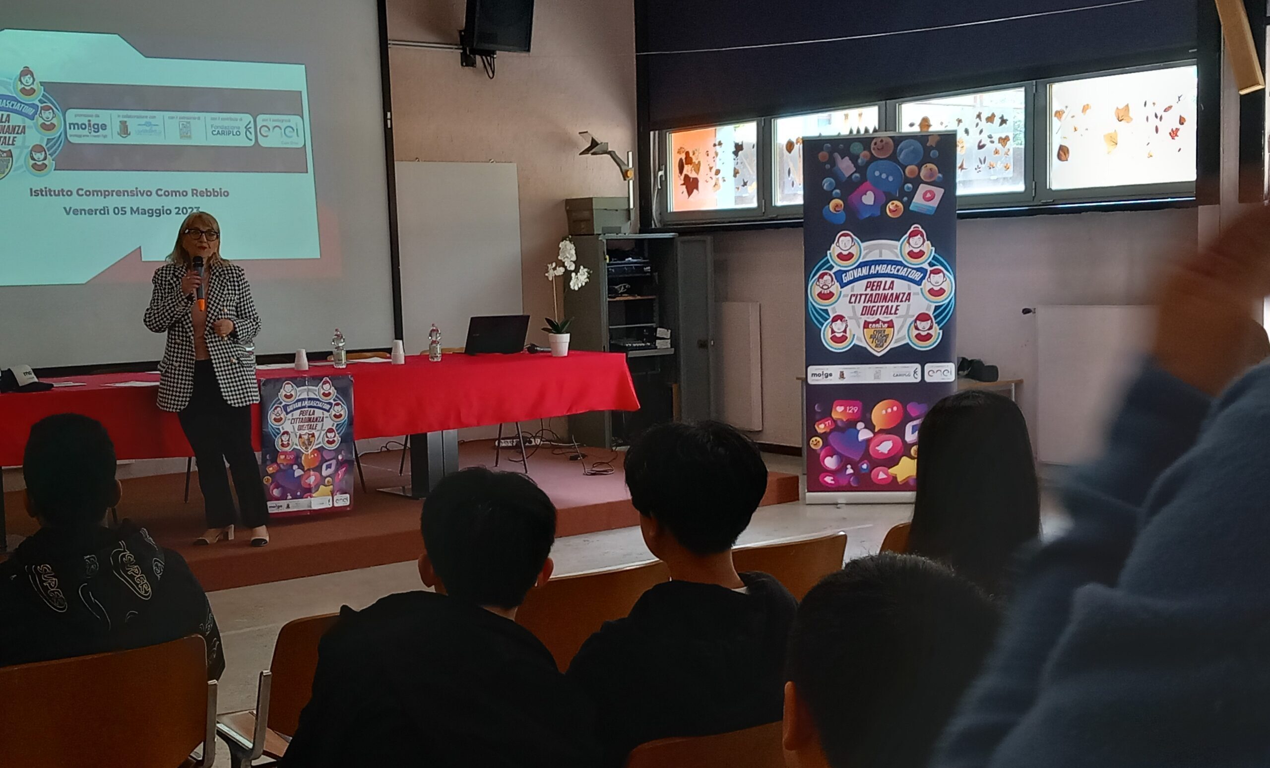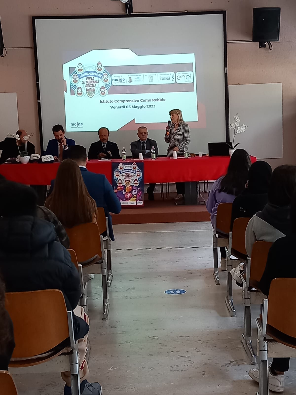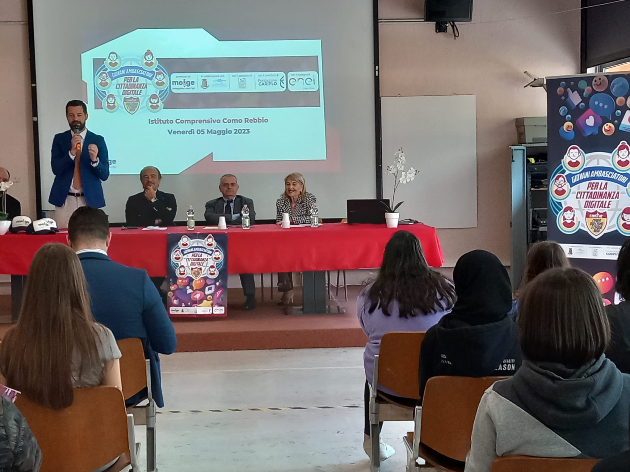 9 Maggio 2023 Lo scorso venerdì si è tenuta una tappa evento del Tour in Lombardia del progetto “Giovani Ambasciatori”: abbiamo realizzato un entusiasmante evento di premiazione dei Giovani Ambasciatori dell’IC Como Rebbio. Ospiti istituzionali e momenti di riflessione hanno reso la giornata di prevenzione realizzata dal Moige ancora più importante. Ad inaugurare la giornata di formazione Daniela De Fazio, Dirigente Scolastica IC Como Rebbio; il senatore Alessio Butti, Sottosegretario all’Innovazione presso la Presidenza del Consiglio; Stefano Locatelli, Vice Presidente Anci – Associazione Nazionale dei Comuni Italiani; Riccardo Bettiga, Garante per l’Infanzia e Adolescenza della Lombardia e Antonio Affinita, Direttore generale Moige. Le psicologhe Moige, a bordo del Centro Mobile, hanno raggiunto gli studenti, pronte e promuovere una formazione dedicata al tema dei cyber risk e spunti di riflessioni critica nei ragazzi, per permettere loro di usare il web e i social in modo responsabile. Premiazioni di Giovani Ambasciatori, docenti, genitori, interviste, chiacchiere e confronti, riflessioni, formazione partecipata e attiva… Tante attività svolte in vista di un solo obiettivo comune: la sicurezza in Rete dei nostri figli e la tutela della loro salute psicologica. La tappa a Como è stata svolta nell’ambito del progetto “Giovani Ambasciatori per la cittadinanza digitale contro cyberbullismo e cyber risk”, la nostra campagna di prevenzione al cyberbullismo, sostenuta da #EnelCuoreOnlus di Enel e da Fondazione Cariplo, che mira a promuovere tra i giovani consapevolezze in tema di cittadinanza digitale. Rivivi gli istanti più belli della tappa del tour a Como! Condividi l'articolo su