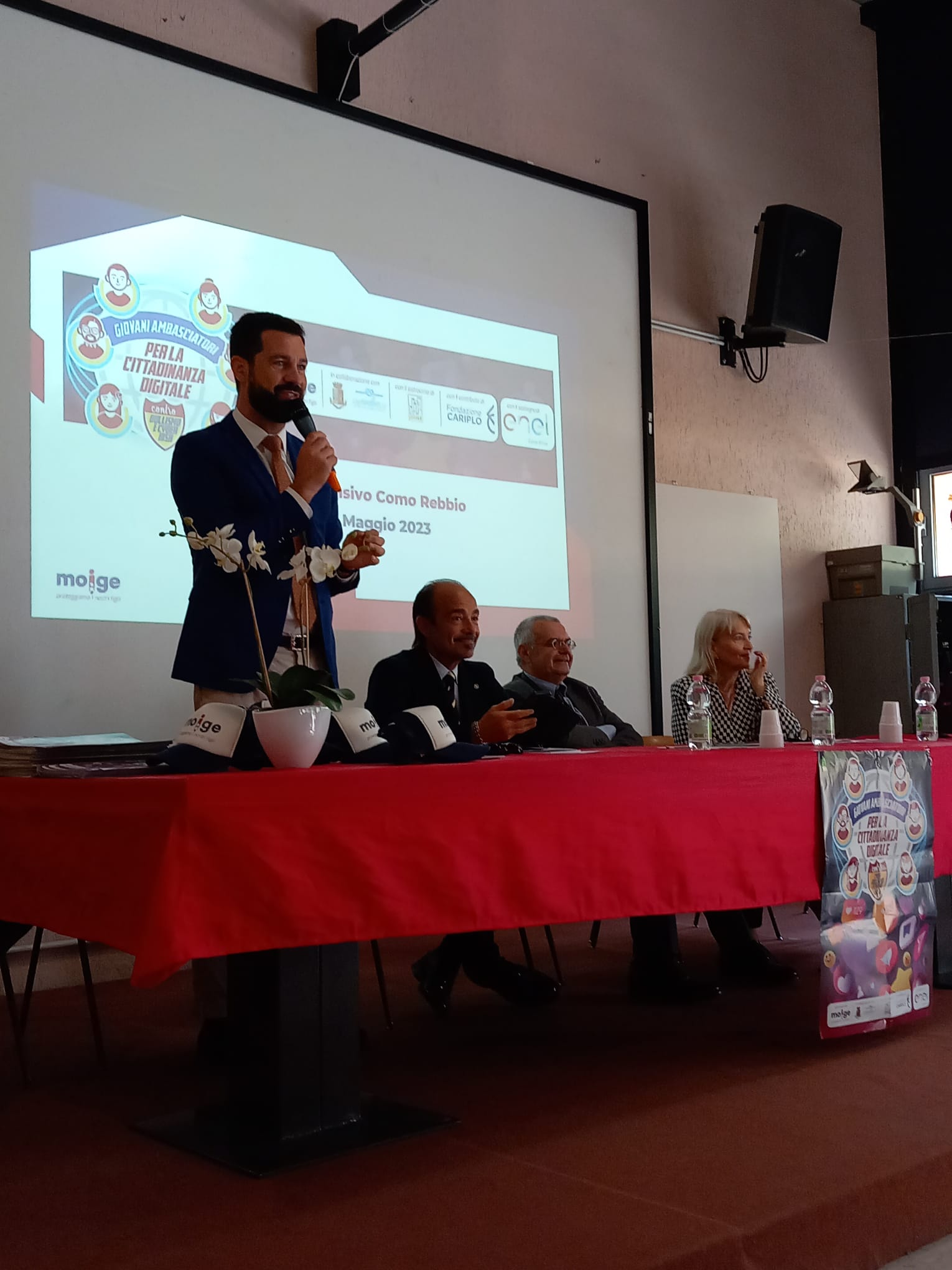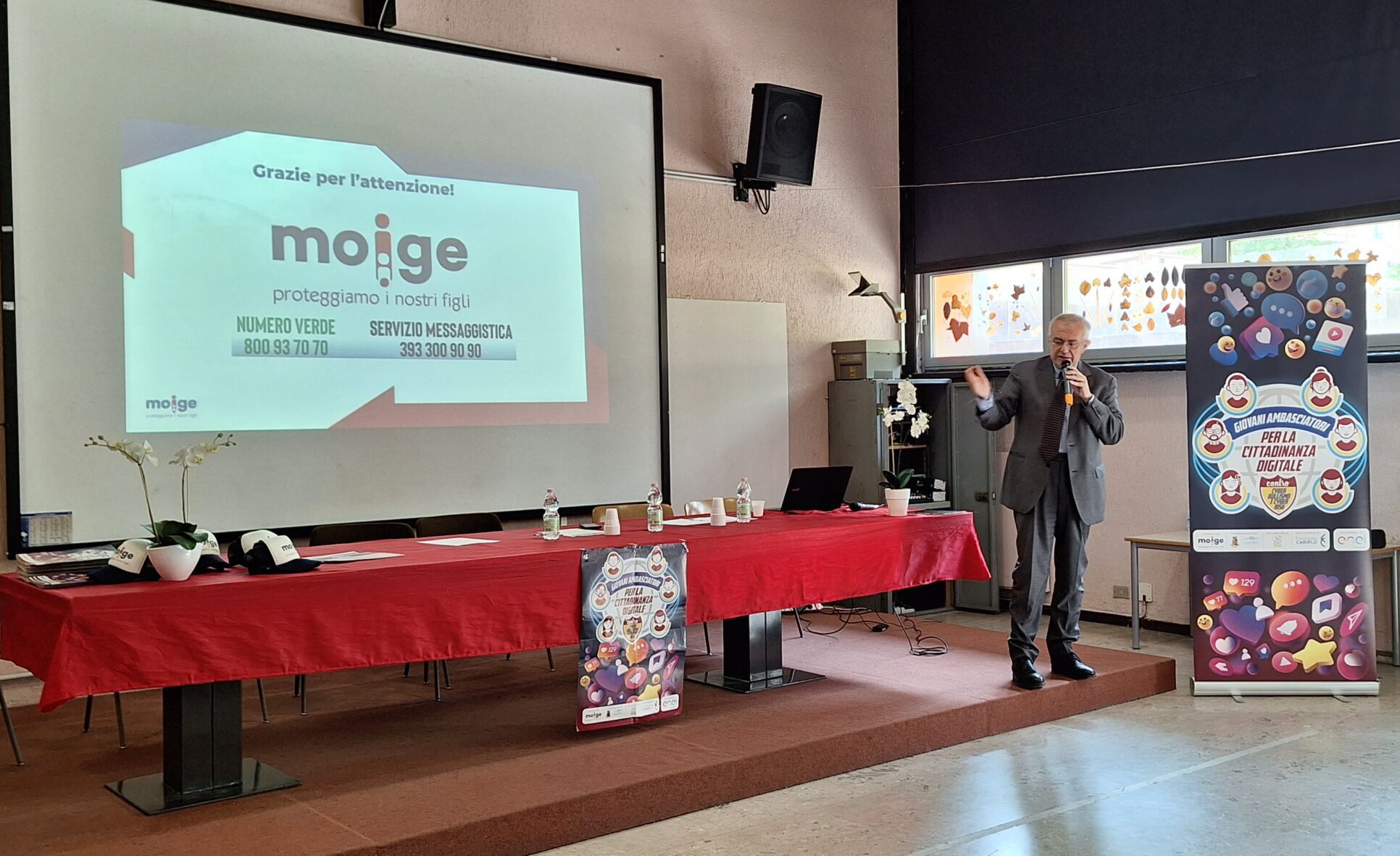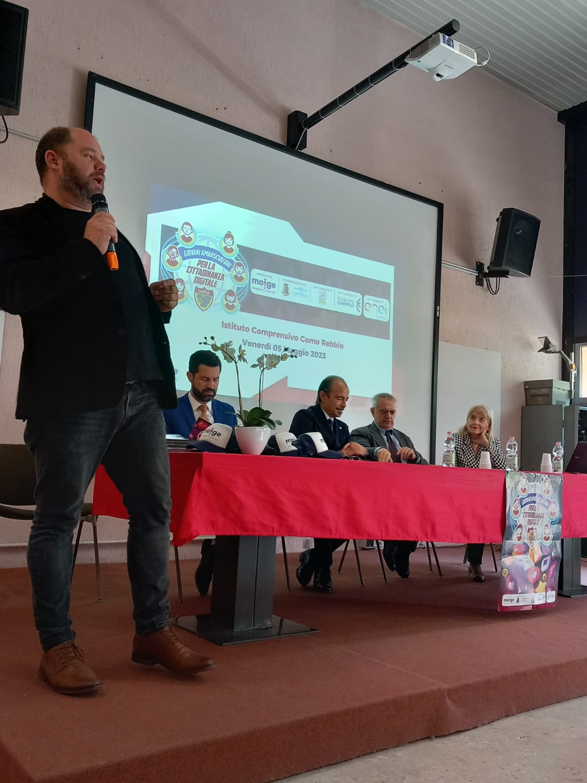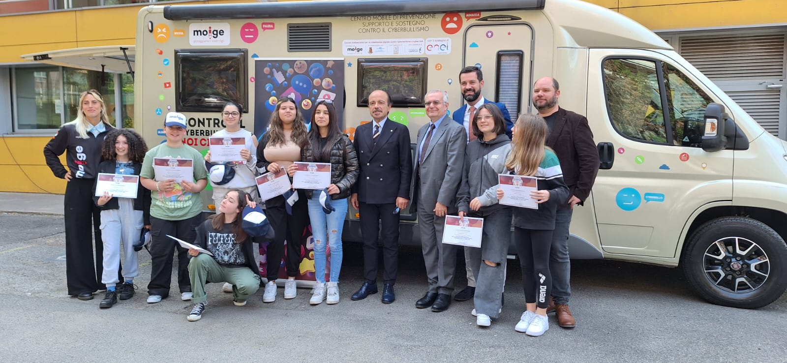 9 Maggio 2023 Lo scorso venerdì si è tenuta una tappa evento del Tour in Lombardia del progetto “Giovani Ambasciatori”: abbiamo realizzato un entusiasmante evento di premiazione dei Giovani Ambasciatori dell’IC Como Rebbio. Ospiti istituzionali e momenti di riflessione hanno reso la giornata di prevenzione realizzata dal Moige ancora più importante. Ad inaugurare la giornata di formazione Daniela De Fazio, Dirigente Scolastica IC Como Rebbio; il senatore Alessio Butti, Sottosegretario all’Innovazione presso la Presidenza del Consiglio; Stefano Locatelli, Vice Presidente Anci – Associazione Nazionale dei Comuni Italiani; Riccardo Bettiga, Garante per l’Infanzia e Adolescenza della Lombardia e Antonio Affinita, Direttore generale Moige. Le psicologhe Moige, a bordo del Centro Mobile, hanno raggiunto gli studenti, pronte e promuovere una formazione dedicata al tema dei cyber risk e spunti di riflessioni critica nei ragazzi, per permettere loro di usare il web e i social in modo responsabile. Premiazioni di Giovani Ambasciatori, docenti, genitori, interviste, chiacchiere e confronti, riflessioni, formazione partecipata e attiva… Tante attività svolte in vista di un solo obiettivo comune: la sicurezza in Rete dei nostri figli e la tutela della loro salute psicologica. La tappa a Como è stata svolta nell’ambito del progetto “Giovani Ambasciatori per la cittadinanza digitale contro cyberbullismo e cyber risk”, la nostra campagna di prevenzione al cyberbullismo, sostenuta da #EnelCuoreOnlus di Enel e da Fondazione Cariplo, che mira a promuovere tra i giovani consapevolezze in tema di cittadinanza digitale. Rivivi gli istanti più belli della tappa del tour a Como! Condividi l'articolo su