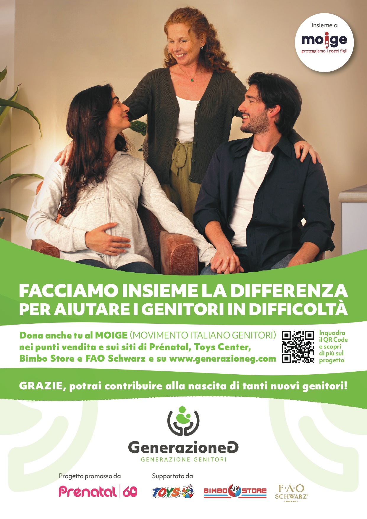21 Settembre 2023 Martedì 19 settembre 2023 è stata lanciata a Roma la campagna di sensibilizzazione e raccolta fondi Generazione G (Generazione Genitori), un progetto di Prénatal in collaborazione con il Moige, sostenuto anche dalle insegne di PRG Retail Group – Toys Center, Bimbostore e FAO Schwarz. Il progetto ha lo scopo di promuovere la natalità e di aiutare concretamente le famiglie che versano in situazioni di fragilità. Con il supporto del Ministro per la famiglia, la natalità e le Pari opportunità Eugenia Roccella, Generazione G ha la missione di aiutare genitori presenti e futuri, contribuendo ad invertire il calo delle nascite. Tavolo relatori: Antonio Affinita, direttore generale del Moige; il Cavaliere del Lavoro, Giovanni Clementoni, CEO Clementoni S.p.A; Eugenia Roccella, Ministra per la Famiglia, la Natalità e le Pari Opportunità; Alberto Rivolta, CEO di Prénatal; Nicola Zotta, CEO di Artsana Group Attraverso la nostra rete di genitori esperti, l’iniziativa assume un ruolo concreto: tempo, esperienza e presenza vengono infatti messi a disposizione della genitorialità fragile e svantaggiata. Saranno supportati 250 nuclei familiari ed erogate oltre 180.000 ore di supporto. Il Moige avrà un ruolo attivo nell’individuazione della rete di genitori esperti, della formazione e dell’affiancamento alle famiglie. Per maggiori informazioni e supportare il progetto clicca qui. Condividi l'articolo su