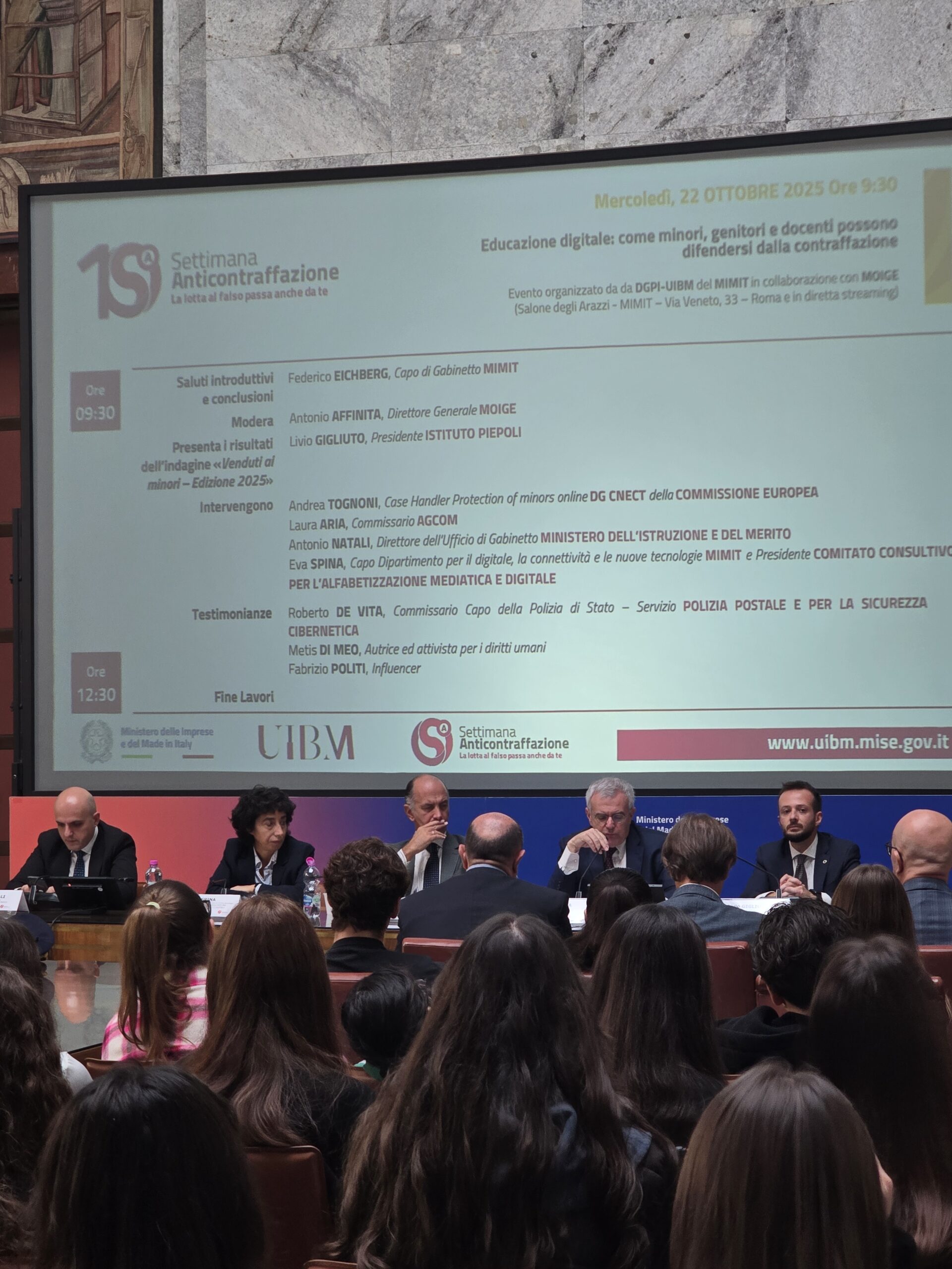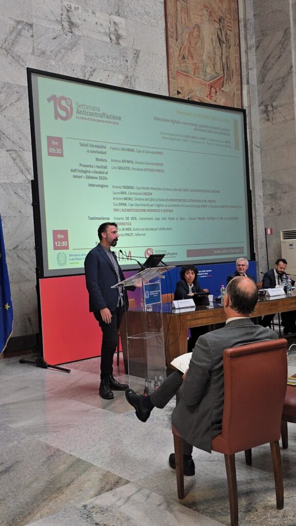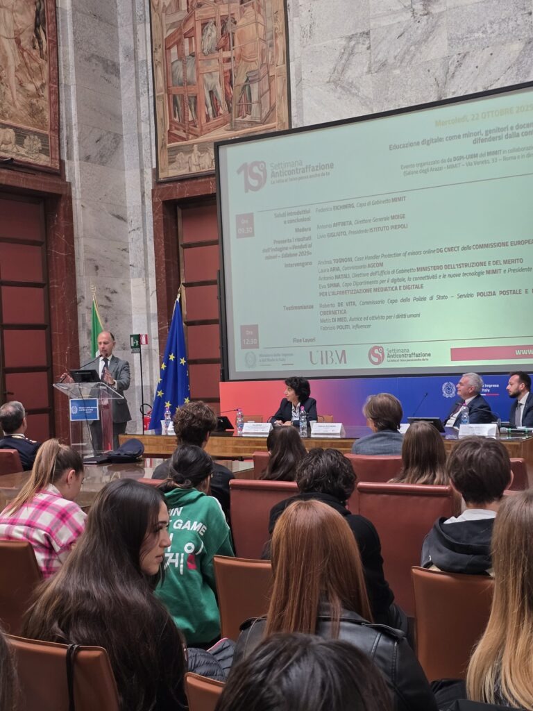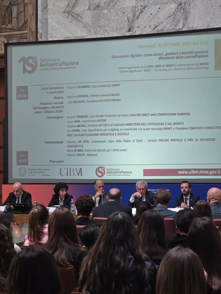 23 Ottobre 2025 In occasione della X edizione della Settimana Anticontraffazione 2025, si è svolto a Roma il convegno “Educazione digitale: come minori, genitori e docenti possono difendersi dalla contraffazione”, promosso dal Moige in collaborazione con l’Ufficio Italiano Brevetti e Marchi del MIMIT. Durante l’incontro sono stati presentati i risultati dell’indagine condotta dall’Istituto Piepoli, che rivelano un dato allarmante: solo il 30% dei ragazzi tra gli 11 e i 17 anni sa definire correttamente cosa sia un prodotto contraffatto, mentre il 33% non ha alcuna percezione del falso e il 72% non conosce le strategie utilizzate dai contraffattori. Un quadro che conferma quanto sia urgente rafforzare l’educazione dei minori sui rischi legati alla contraffazione, promuovendo un consumo più consapevole e responsabile, soprattutto nell’ambiente digitale. Al convegno sono intervenuti rappresentanti delle istituzioni e del mondo della sicurezza e della scuola, tra cui Federico Eichberg, Capo di Gabinetto del MIMIT, Antonio Affinita, cofondatore e direttore generale del Moige, e Livio Gigliuto, presidente dell’Istituto Piepoli. Un appuntamento che rinnova l’impegno del Moige nel promuovere la tutela dei minori e delle famiglie, anche attraverso la conoscenza dei rischi legati ai comportamenti online e all’acquisto di prodotti contraffatti. Condividi l'articolo su