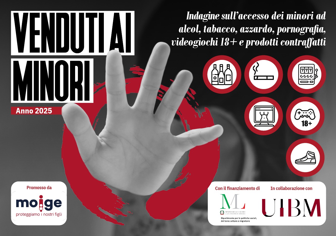 “Venduti ai Minori” è l’indagine promossa dal Moige con l’Istituto Piepoli con l’obiettivo di inquadrare il fenomeno della vendita ai minori dei prodotti a loro vietati: Alcol, Fumo, Giochi d’azzardo, Pornografia, Videogiochi 18+ e prodotti contraffatti.